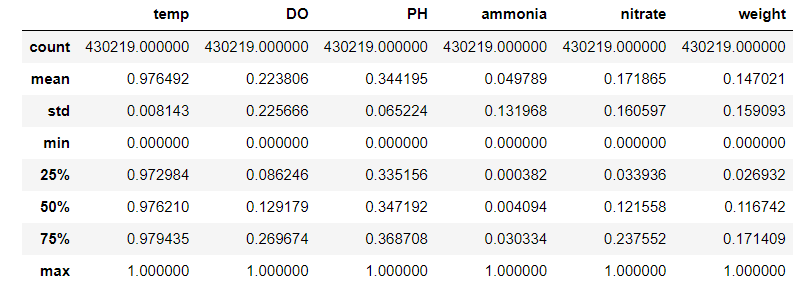Note that we are working with a time series, so we have to be especially careful. I am not a data scientist, so time series is always frightening to me. In the future, we will use RNN to create a model to detect anomaly in the pond. Here we are combining various tables together, so the date column becomes less meaningful. Later on, we may have to look at each individual pond to perform certain tasks.